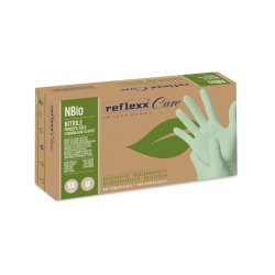 Guanto monouso in nitrile della collezione NBIO di Reflexx. E' un prodotto innovativo in quanto ha una Biodegradibilità accelerata e quindi è eco-friendly rispetto ai normali guanti monouso perchè una volta utilizzato e gettato nei rifiuti si decompone molto più velocemente. E' senza polvere e soprattutto resistente. Idoneo al contatto alimentare, si può utilizzare a contatto di olii, soluzioni acquose o alcooliche. Non resiste molto a contatto con acidi a PH inferiore a 4,5 ed a prodotti lattiero/caseari. Non è compostabile. E' un dispositivo medico conforme al Regolamento EU 2016/425, alle normative EN 374 - Type C - EN 374 - 5 Virus. Peso gr.3,5. Spessore mm.0,07. Venduto in confezioni da 100 pezzi. Perfetto per l'uso quotidiano in tutte le attività della piccola ristorazione professionale ed anche a casa.