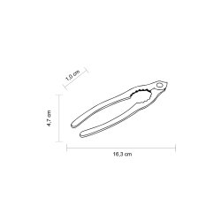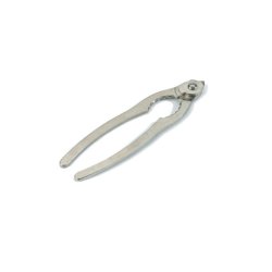 Pinza in acciaio inox 18/10 utilizzata da baristi, barman e sommelier per l'apertura delle bottiglie di spumante. E' un utensile molto simile allo schiaccianoci in quanto ha una curvatura dentellata che serve ad afferrare il tappo in maniera sicura per ruotarlo e svitarlo dalla bottiglia. Sulla parte superiore la pinza ha una simil tenaglia utilizzata per troncare il filo di alluminio che solitamente fissa i tappi. E' un prodotto professionale italiano al 100%.
