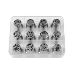 Set composto da 12 bocchette per sac à poche in acciaio inox aisi 304, lavabili in lavastoviglie ed idonee al contatto alimentare. Le bocchette sono tutte di diverso decoro e permettono la creazione di fiori di differenti tipologie. Utilizzate per decorare dolci, semifreddi, monoporzioni sono un prodotto made in Italy di ottima qualità.