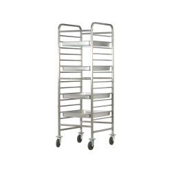 CARRELLO INOX PORTATEGLIE CM.65x53 GASTRONORM 2/1 14 TEGLIE