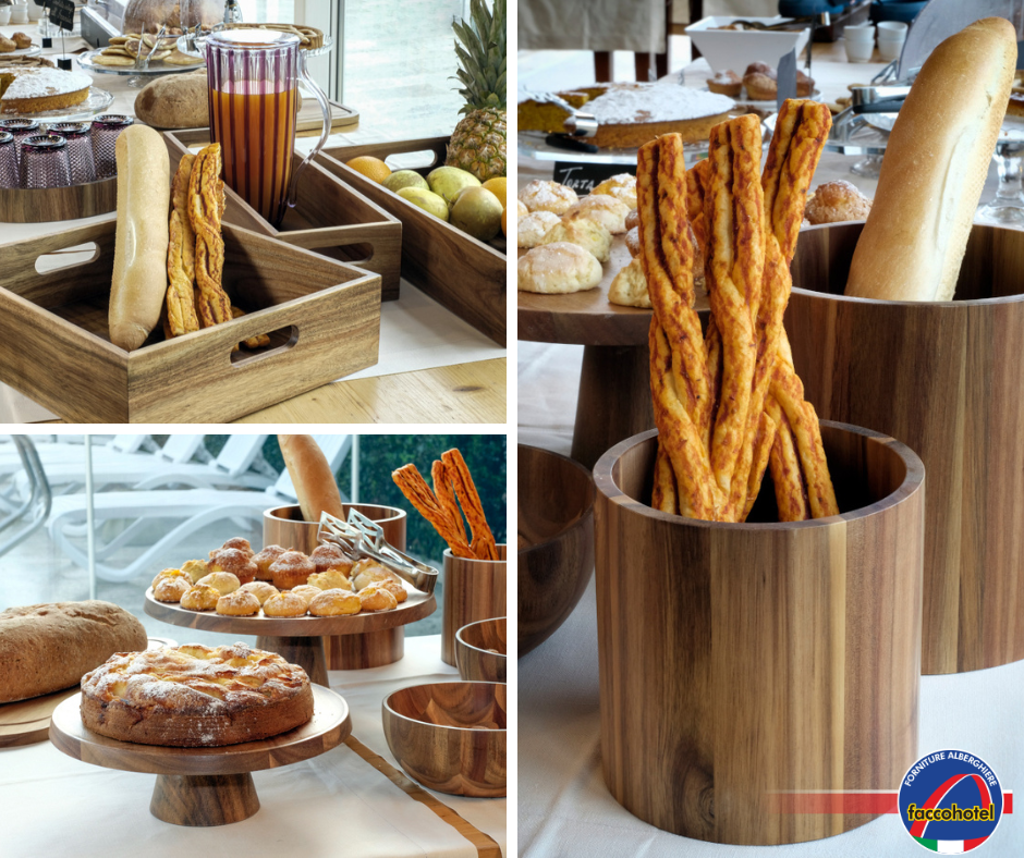 Ideali per l’allestimento di buffet e colazioni in hotel, agriturismi e B&B e molto belle anche da portare in tavola, sono le cassette in legno di acacia.Disponibili in diverse dimensioni, sono estremamente versatili, perchè oltre ad essere utilizzate come contenitori, si possono usare anche come alzate.