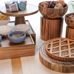 Raffinato vassoio in legno di acacia color naturale, di forma rotonda e diametro cm.35, con bordo spesso di altezza cm.5. E' un articolo molto apprezzato da B&B, hotel e catering per l'esposizione a buffet durante le prime colazioni o durante i banchetti e le manifestazioni. Ha un diametro molto interessante sia per proporre prodotti freschi che per monoporzioni. Inoltre si può girare ed utilizzare come alzata porta dolci. Viene spesso abbinato alle alzate circolari di diametro cm.15 o 20 che permettono di comporre un'esposizione ordinata e rustica. Venduto singolarmente è un prodotto di ottima finitura e qualità. Consigliamo di pulirlo con un panno umido e detergente neutro.