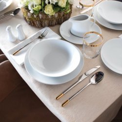 Piatto piano della linea Elips di Gural. E' una linea in porcellana bianca, molto resistente ai lavaggi industriali ed agli urti, di buon spessore, robusta. Si caratterizza per una forma ovale molto piacevole che la rende differente rispetto alle linee classiche rotonde o a quelle moderne quadre. Non ha falda quindi si può sfruttare tutto il piatto per la presentazione dei propri capolavori! Ottimo rapporto qualità-prezzo.