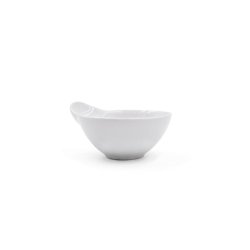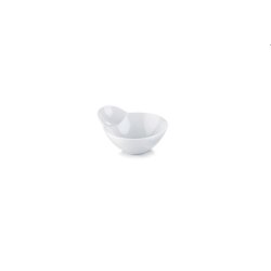 Ciotola Snack con manichetto della linea Miniature di Manifattura Porcellane Saronno. Miniature è una collezione di coppette, ciotole, bicchierini, piattini di tutte le forme, ideata per il finger food, per i monoporzioni, per le piccole presentazioni e per le salsine di accompagnamento. E' un prodotto in porcellana alberghiera per cottura ossia, oltre alla classica resistenza agli urti, ai lavaggi industriali e all'utilizzo in forno a microonde, può essere utilizzato in forno per cottura e in frigo per esposizione. Range temperatura : -18 +300. Made in Italy.