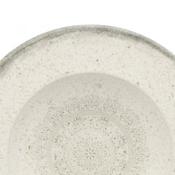 Piatto pasta della linea Lace di Mesa Ceramics. E' un piatto in robusto stoneware con effetto invecchiato arricchito da un decoro affossante che richiama i mosaici antichi ed ha una colorazione verdino granito su base bianca opaca. Sembra una pietra scolpita, esteticamente molto bello! Inoltre la decorazione è sottosmalto con tecnica a stampa digitale resistente quindi ai ripetuti lavaggi ad alte temperature delle macchine lavapiatti nelle cucine professionali. Si può utilizzare in forno a microonde ed è certificato per l'uso alimentare. Il pasta è il piatto principe dei primi : risotti, zuppe, pasta fresca con sughi delicati e profumati. Adatto sia per l'uso professionale che domestico. Diametro esterno con falda cm.27. Diametro interno senza falda cm.17. Venduto in confezione da 4 pezzi. Ottima qualità made in Portogallo.