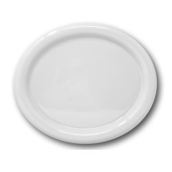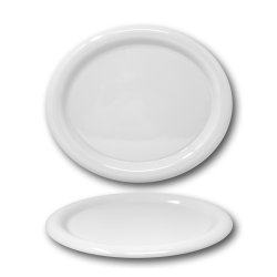 Ovale con bordo arrotondato della linea Giotto di Saturnia Porcellane. Giotto è una collezione di piatti dalla forma rotonda con un elegante bordo bombato di 3,5 cm che corre lungo tutto il perimetro del piatto e rendendolo moderno e semplice. Per i camerieri molto pratico da prendere e servire in quanto la falda bombata sotto è vuota cosa che permette di inserire la mano e tenere saldamente il piatto. E' in porcellana alberghiera, robusto e resistente ai lavaggi industriali. La parte interna utile misura cm.26,5x21,5, ottima per servire primi di pasta con sughi ristretti o secondi di carne con contorni di verdure cotte o grigliate. Prodotto italiano, viene venduto in confezione da 6 pezzi.