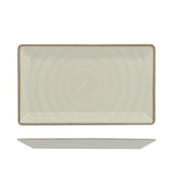 Piatto rettangolare di misura cm.26x15 della collezione Vortex bianco di Saturnia porcellane. E' un rettangolare dalle dimensioni contenute con spazio utile di cm.21x10. La falda di 2 cm.corre lungo tutto il piatto ed è rifinita con bruciatura sull'orlo color marroncino. Il piatto, come tutta la linea, ha un decoro a vortice applicato sottosmalto con tecnica digital print ed è per questo resistente ai ripetuti lavaggi ad alte temperature delle macchine professionali. La colorazione è bianco-beige, molto rustica. Nasce per la piccola ristorazione professionale ma ben si presta anche per l'uso domestico. La base è smaltata come la parte superiore a garanzia di durata nel tempo del piatto. Venduto singolarmente è imballato in confezioni da 10 pezzi. Prodotto 100% italiano, certificato moca ed idoneo al contatto alimentare.