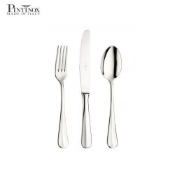 Coltello tavola di cortesia della collezione Baguette di Pintinox. E' il coltello che viene presentato dal ristorante e dall'hotel in abbinamento alla forchetta ed al cucchiaio tavola. Prodotto in acciaio inox 18/10 con spessore mm.3, ha manico pieno, di elegante forma arrotondata e particolare rilievo centrale nel manico. Questa posata si abbina a piatti bianchi, di qualsiasi forma, dal rotondo all'ovale, dal rettangolare con bordi smussati alle forme particolari. Perfetto anche per una raffinata tavola di casa. Venduto in imballi da 12 pezzi. Conforme alle normative, dotato di certificazione moca, è resistente ai lavaggi industriali e garantito contro la formazione di ruggine e l'opacizzazione nel tempo.