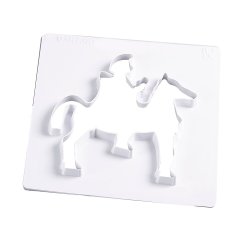 Particolarissimo stampo in plastica per la creazione del dolce di San Martino, tipica torta di origine veneta a base di pasta frolla decorata con cioccolato, glassa di zucchero, confettini colorati e tantissime caramelle. Rappresenta il santo a cavallo e viene proposta in pasticceria a fine ottobre/inizio novembre in quanto la festa tipica è l'11 novembre. Ha dimensione cm.26x28 ed è in plastica idonea al contatto alimentare. Ovviamente si utilizza dopo aver steso la frolla sulla teglia per cottura, per fare la tipica forma del cavaliere. Prodotto in Italia, può essere lavato in lavastoviglie.