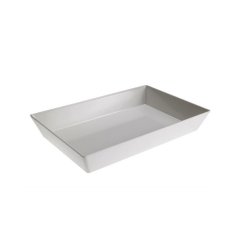 Vassoio in melamina certificata per l'uso alimentare, di forma rettangolare gastronorm 1/1 con lunghezza cm.53 e larghezza cm.32,5. E' un vassoio molto robusto e lavabile in lavastoviglie che si caratterizza per il bordo alto cm.7. Ne deriva una capacità contenitiva elevata pari a quella della medesima teglia in acciaio inox con altezza cm.6,5. Questo vassoio permette l'esposizione nei banchi gastronomia e nelle vetrine frigo di prodotti preparati come i primi di pasta fredda, le insaltate di cereali, riso, orzo e farro. E' ideale per proporre lasagne al ragù o alla parmiggiana, pasticci o paste pasticciate, carni arroste tagliate a fettine fine ed adagiate nel loro sugo di cottura con spezie ad insaporire. Macelli e macellerie lo apprezzano per proporre tagli importanti di carne o carrè di maiale, salsicce, costicine, ossi buco o spiedini. Essendo di misura gastronorm 1/1 viene spesso abbinato agli stessi vassoi di misure 1/2 - 2/3 ed 1/3 per sfruttare al massimo lo spazio della vetrina e garantire una bella presentazione del prodotto. Peso : grammi 1,358.